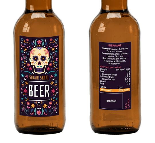 Bieretiketten „Schädel" - 65 x 130 / 43 x 89 mm